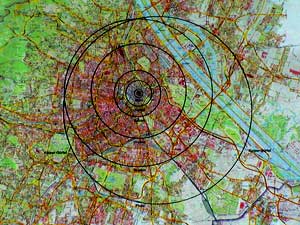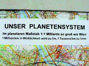 Auf den Plan von Wien projiziertes Sonnensystem