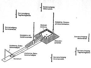 Eigens errichtete Pfeiler markieren wo die Sonnenbahn zum jeweiligen