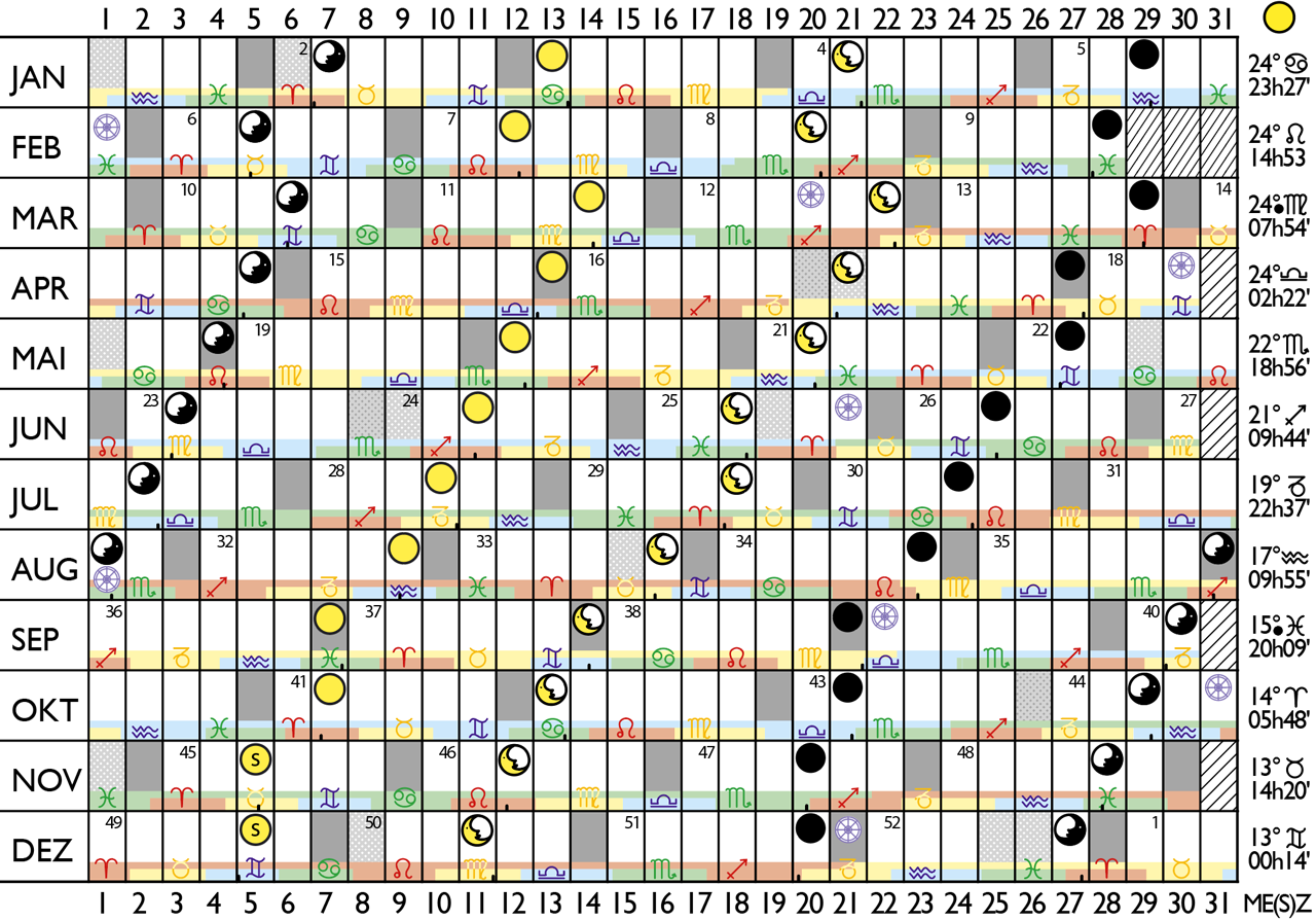 Gute Stimmung, Ausgelassenheit, Orakeltag. Vollmondfest empfohlen.
